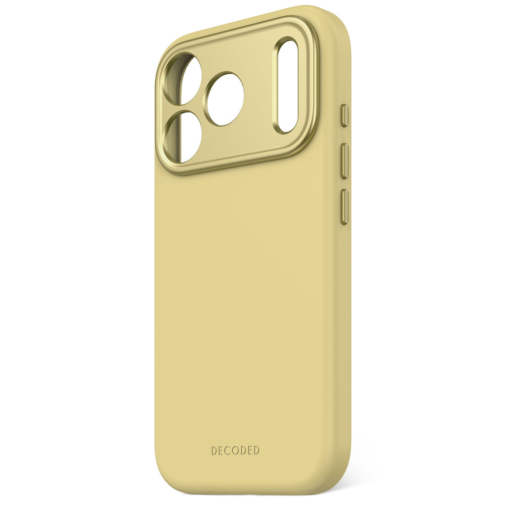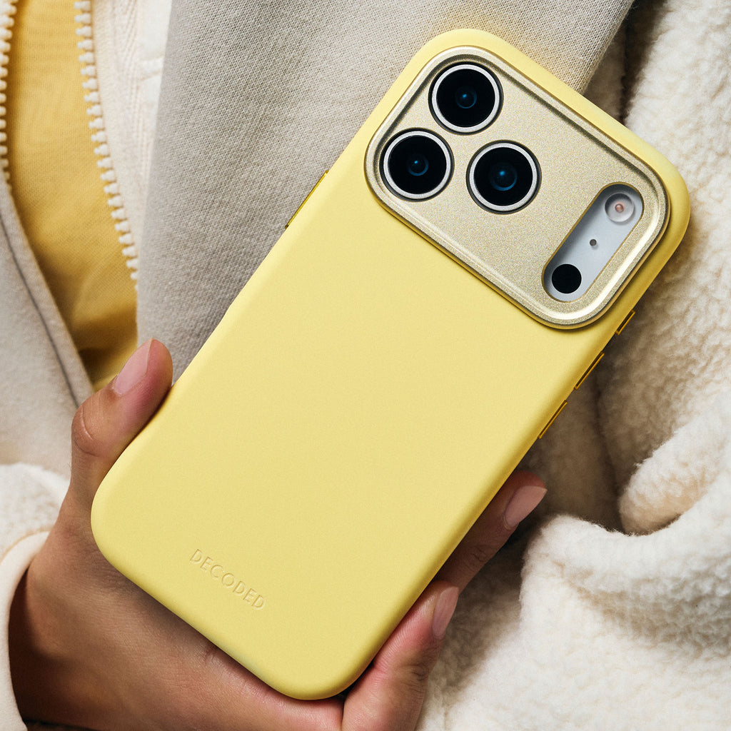 The DECODED yuma yellow Silicone iPhone 17 Pro case offers more than protection; it enhances the elegance of your iPhone while keeping it safe. Combining sleek design, antimicrobial technology, and everyday functionality, it is the perfect balance of beauty and durability. A stylish case that truly works as hard as it looks.